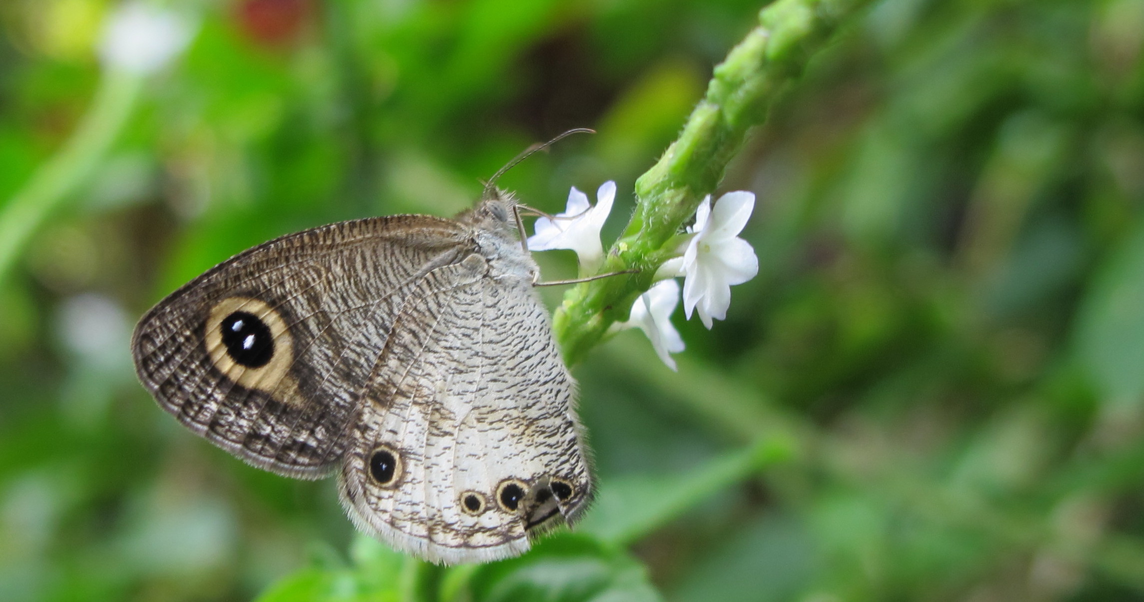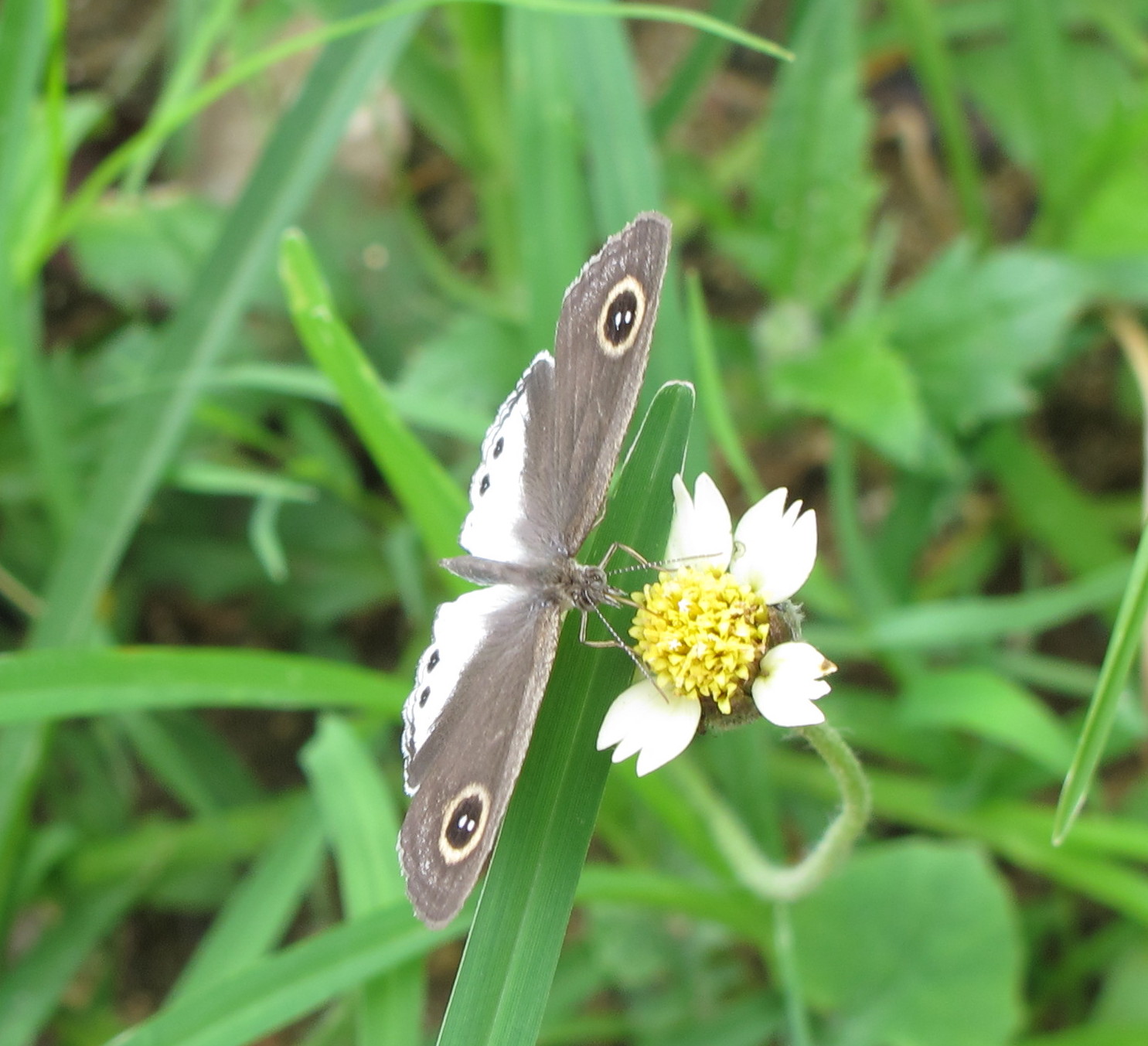 White Four-ring (Ypthima ceyloncia) She is small and a low flyer. I could always find her in the garden with many of her